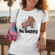 I am absolutely thrilled to introduce the "Be Happy Retro 70s Floral Roller Skating Graphic T-Shirt with Rainbow Flowers and Positive Quote"! This vibrant and nostalgic design takes us back to the groovy era of the 70s, reminding us of carefree days filled with roller skating, flower power, and spreading positivity. The retro floral print in a rainbow palette instantly brings joy and spreads positive vibes to anyone who lays their eyes on it. The inclusion of a cheerful quote adds an extra dose of encouragement to uplift your spirits throughout the day. Not only is this T-shirt a fashion statement, but it is also a symbol of happiness and positivity that can inspire you and those around you. So put on this fabulous shirt, lace up those skates, and let the world see your unwavering excitement for life!