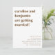 These beautiful wedding invitations feature a colourful retro geometric pattern in brown, pink, and yellow, a minimalist aesthetic, and are budget-conscious as you only need this one card if you have a wedding website you can use to provide your guests with all of the details.