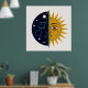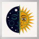 Retro 70s Celestial Sun Moon Split Face Art Print