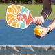 Retro 70s Colourful Ocean Sunrise Monogram Initial Pickleball Paddle