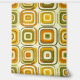 A vibrant and dynamic geometric pattern inspired by the 1970s. This seamless design features layered squares and rounded edges in warm hues of orange, yellow, olive green, and brown. The abstract, three-dimensional effect gives it a bold, retro aesthetic, perfect for vintage-themed decor, wallpaper, textiles, or digital design.