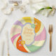 Retro 70s Groovy Wave Flower Happy Birthday Paper Plate