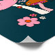 Retro 70s Mushrooms And Flowers Navy Blue Poster