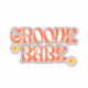 Retro 70's themed font in mustard and Orange and the words 'groovy baby'.