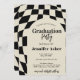 Retro 70s Navy Blue Chequered Arch Photo Graduation Invitation...