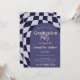 Retro 70s Navy Blue Chequered Arch Photo Graduation Invitation...