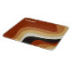 This groovy retro personalised cutting board features wavy lines in tan, brown, and orange, reminiscent of the 70s and hippie lifestyle. A bold vintage customised gift with funky white script next to the abstract curvy lines. Groove along with this fun earth tone design.
