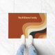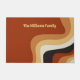 This groovy retro personalised home welcome mat features wavy lines in tan, brown, and orange, reminiscent of the 70s and hippie lifestyle. A bold vintage customised doormat gift with funky white script next to the abstract curvy lines. Groove along with this fun earth tone design.
