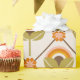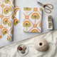 Groovy retro 70s pattern featuring rainbow florals in shades of pink, green and orange.