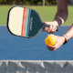 Create your own retro personalised pickleball paddle. Features abstract 70s vintage stripes design and custom name in a classic style typography.