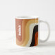 This groovy retro customisable hippie mug features wavy lines in tan, brown, and orange, reminiscent of the 70s lifestyle. A bold vintage gift with funky white script next to the abstract curvy lines. Groove along with this fun earth tone present.