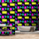 RETRO 80S FUNKY BRIGHT COLORFUL FLUORO PATTERN WALLPAPER