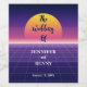 Retro 80s Neon Purple Synthwave Sunset Wedding Wine Label