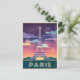 Retro 80s Neon Synthwave Eiffel Tower Paris France Postcard