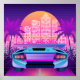 Retro 80s Neon Vaporwave City Sunset and Car Poster