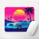 Upgrade your battle station with the ultimate retro-futuristic aesthetic. This XL gaming desk mat features a classic turquoise muscle car cruising through a neon pink sunset with glowing palm trees—the peak of 80s outrun style.