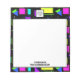 Retro, trendy, and different - this 80s fun design has a colourful geometric pattern of many shapes in bright colours - triangles, squares, rectangles, along with lines and dots. The eighties style pattern borders a large white rectangle space for taking notes or doodling. There is a small square at the top to put in your company logo, and custom text for a business name and website.