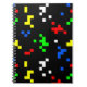 Classic video game fans will love this fun, retro style 8-bit graphics pattern in bright colours! The simple, square shapes stand out on a black background. It's shown here on a classic notebook for school. Adjust the pattern size and move it around to your preference. It's a fun notebook for any gamer kid!