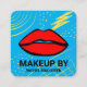 This retro, cool, and unique makeup business card is perfect for any makeup artist or beauty salon. It features a hand-drawn artsy yellow 90's geometric jumble pattern on top of a simple blue background with bright red and black lips. This card includes your business and social media on the back. It's an excellent way to advertise and spark new business. It's simple, artistic, trendy, minimalist, and stylish; the perfect card to attract customers.