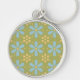 Retro Abstract Blue and Yellow Flowers on Green Key Ring