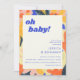 Retro Artsy Abstract Botanical Cute Baby Shower Invitation in Blue, Orange, Pink, and Yellow
