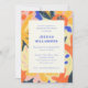 Retro Artsy Abstract Botanical Graduation Party Invitation in Blue, Orange, Pink, and Yellow