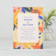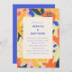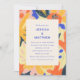 Retro Artsy Abstract Botanical Wedding Invitation in Blue, Orange, Pink, and Yellow with RSVP Online Details