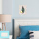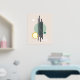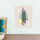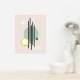 Poster featuring abstract, geometric shapes in retro colours with gold foil accent.