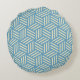Retro Abstract Optical Illusion Cubes Pattern Blue Round Cushion