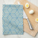Retro Abstract Optical Illusion Cubes Pattern Blue Tea Towel