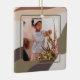 Retro Abstract Photo Christmas Holiday Ornament Personalised with your own photograph from Ricaso. A great photo gift for yourself or as a gift for loved ones and friends. Designed with a trendy muted green, brown and beige pattern
