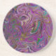 This elegant abstract liquid marble coaster won't just protect your furniture it will be a conversation piece. Purple with accents of blue and green, the retro psychedelic design is mesmerizing and beautiful.