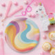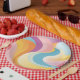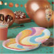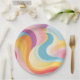 A fabulous retro party plate. This muted 70's vibe design features a soft colourful boho rainbow abstract in purple, orange and blue. A gorgeous retro tableware design that will stand out from the crowd.