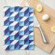 Retro Abstract Shades of Blue Geometric Pattern Tea Towel