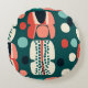 Introduce a sense of artistic curiosity to your seating area with this unique "Retro Shapes" throw pillow. The design features a charming arrangement of stylized "totem" pods and floating organic circles, reminiscent of 1950s abstract paper cutouts. A sophisticated palette of deep spruce green, vibrant coral, and soft mint is grounded by bold black accents and crisp cream highlights. Intricate stippled dot patterns within the shapes add a hand-crafted, artisanal texture, making this pillow a perfect blend of vintage whimsy and modern graphic design.