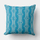 Retro Abstract White Lines on Blue Pattern Cushion