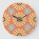 Retro Abstrat Blue and Orange Daisies Pattern Large Clock