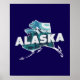 Wall art poster features a retro style scenic silhouette of the state of Alaska on a dark blue background (which can be removed or customised to a different colour of your choosing)