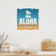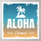 Vector aloha with hot beach colours, retro background. Rough edges in grunge style. Island tropical icon with palm. | © and ® Bigstock® - All Rights Reserved.