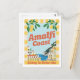 Capture the essence of Italian charm with this exquisite Amalfi Coast postcard, inspired by classic retro travel posters! This vibrant vintage illustration brings to life the stunning beauty of the Amalfi Coast, Italy, with its picturesque cliffside villages and sparkling blue Mediterranean Sea. Adorned with lush lemon branches and framed by a cheerful striped border, this design truly embodies the phrase, 'Living la Dolce vita'