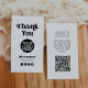 These trendy, boho black and white small business branding and packing thank you cards feature black retro typography, on a simple white background. There are social media icons, room for your logo, and a spot for a QR code on the back. You can adapt the message to offer a discount to your customers. A look that is both professional and stylish, and perfect for any type of occupation, such as content creator, makeup artist, hair salon stylist, and more.