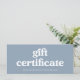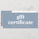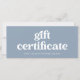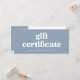 This trendy, boho dusty blue small business gift certificate features stylish retro typography. There is a spot for your logo on the back.