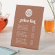 This trendy, boho terracotta small business tabletop pedestal sign features white retro typography, on a earth tone terracotta background. There is room for your logo, and a price list or menu of services for your business. A look that is both professional and stylish, and perfect for any type of occupation, such as makeup artist, hair salon stylist, spa, and more.