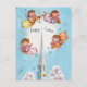 Adorable angels sound their horns in joy in the sky above a church retro Happy Easter