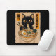 Retro Anime Kawaii Black Cat Eating Ramen Noodles Mouse Pad