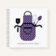 Fun customised recipe book featuring a purple & white polka dot apron with kitchen utensils. Visit our shop to view our large selection of unique recipe notebooks.