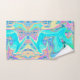 Retro Aqua Blue Liquid Art on Abstract Hydrangeas Bath Towel Set