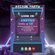 Level up the fun with this retro arcade birthday invitation! Featuring a vintage video game machine in black, blue, and purple with the phrase “Arcade Party Game On”, this design is perfect for kids who love gaming. A nostalgic yet modern look for your boy’s birthday party.