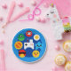 "Retro Arcade Fun" brings back the nostalgia of classic video games with eye-catching graphics and bold, primary colours. The design features iconic elements like Pac-Man, Space Invaders aliens, and others, all arranged to create a playful and energetic composition. This style appeals to gamers of all ages, from kids discovering retro games to adults who grew up with classic arcade cabinets. It's perfect for gaming-themed parties, birthdays of tech enthusiasts, or for those who want to add a touch of retro fun to their celebration. The versatile design works well for various age groups and can be adapted for children's parties or adult gatherings with a hint of nostalgia.