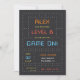 These awesome gamer theme birthday party invitations with a vintage arcade game vibe feature retro lettering on a dark grey and white dot grid. "[Name] has reached level [age]" appears at the top in retro digital lettering, with your party details beneath. Perfect for video game truck or arcade birthday parties!